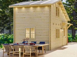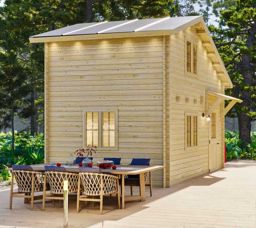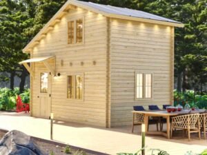 The BlueWater Loft 160 is a striking backyard cabin that delivers big space and strong construction in a smart, versatile footprint. This model is built using 38 mm thick premium spruce logs, making it a solid and budget-friendly option that still provides excellent strength and thermal mass. For those wanting an even heavier build, this cabin is also available in a 70 mm log option.