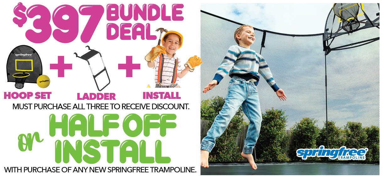 - Free delivery on trampolines and hoops within 60 miles of New Hudson showroom.
